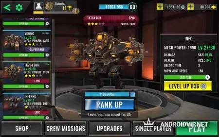 Игра также может порадовать вас системой развития, что можно отнести к RPG-составляющей. Для каждого робота присутствует свой ряд улучшений, позволяющей значительно усилить боевую машину. Некоторые улучшения повышают количество брони, а другие повышают урон от основного орудия. Все дополнения для каждого меха приобретаются за внутриигровую валюту, которую можно получить за успешное участие в боях или за прохождение определенных заданий.