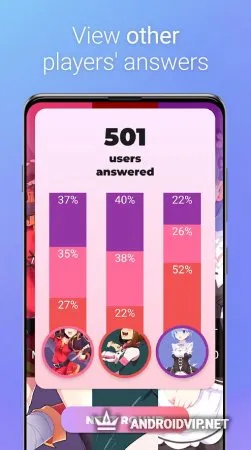 Как отмечает разработчик, на данный момент в игре находится около 10 000 персонажей из известных аниме. Однако, не исключены те моменты, в которых персонажи будут повторяться раз за разом, поэтому была добавлена система фильтрации. У вас есть возможность исключить тех героев, которые вам не нравятся, или, наоборот, отметить персонажей, с которыми вы бы хотели провести викторину.