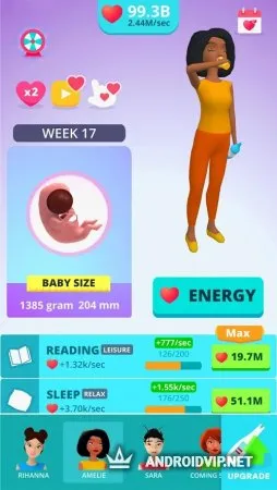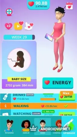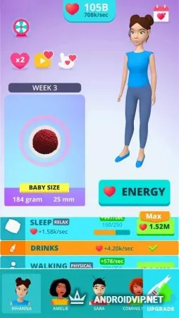 Симулятор Беременности Idle 3D – проект от Gismart, где игрокам предстоит попробовать себя в роли будущих мам. Весь процесс беременности разделен на несколько этапов, каждый из которых имеет при себе уникальные возможности.