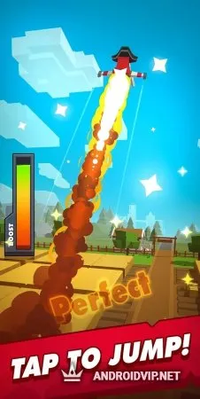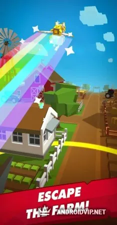 Взмывайте вверх и преодолевайте самые разные препятствия, которые приготовила вам игра. Чем выше и дальше получится прыжок, тем больше монет вы получите и тем вероятнее ваш побег. За монетки вы сможете улучшить свой реактивный ранец, показатели скороости и прыжка курицы. Не забудьте про защиту хрупкой курочки: приобретайте всевозможные шлемы.