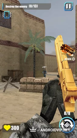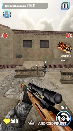 Цепочка заданий включает в себя более 25 интересных уровней, сложность которых будет увеличиваться с каждой пройденной миссией. Первые задания будут вмещать в себя 5-6 противников, но с середины игры задачи будут значительно усложняться: необходимо обезвреживать взрывные устройства, уничтожать врагов и вовремя прятаться в укрытие от шквального огня. Из помощников будет лишь реакция и большое количество разнообразного оружия.Можно взять легендарный автомат Калашникова, либо использовать мощнейший Desert Eagle. Если оружие имеет при себе оптический прицел, то не упускайте возможность облегчить себе задание. Снайперские винтовки обладают поистине убойной мощностью, но их применение на близкой дистанции может привести к печальным последствиям.