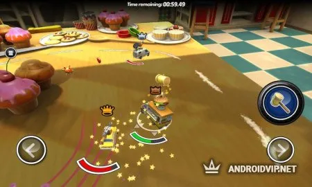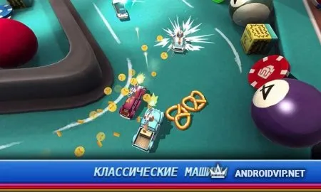 Соревнуйтесь на 18 безумных гоночных трассах - кухонных столах с едой, раковинах, столах для бильярда. Большой выбор машин самого разного класса и вида: от военных G.I. J.O.E и танков, автомобилей скорой помощи, пожарного и строительного транспорта до классических и современных гоночных болидов. Всего в игре почти 80 разнообразных авто! Собери их все!