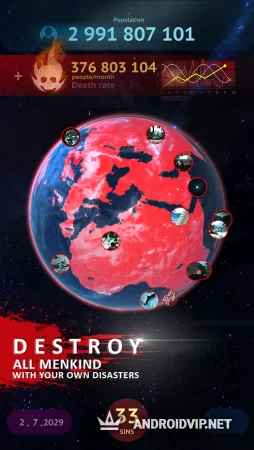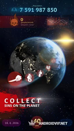 Для запуска смертельной машины необходимо собрать некоторое количество грехов. Их можно заработать, провоцируя убийства, грабежи и прочие злодеяния на планете. Но как только будет накоплена сила для запуска, можно приступать к основной части – уничтожению. Создавайте пожары, нагоняйте на человечество потопы и землетрясения, сокрушайте здания и сбрасывайте метеориты!