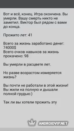 Большинство моментов в игре довольно неплохо расписаны: даже на простое взросление выделена интересная история с каким-либо случаем из жизни вашего персонажа. Иногда ситуации будут приобретать некую комичность, а в другие моменты игрока может постигнуть грусть. Все это успешно комбинируется и выливается в полноценный симулятор жизни со своими фишками и особенностями. Пусть игровой процесс и основывается только на текстовых элементах, но Симулятор жизни. New Life имеет при себе некий шарм!
