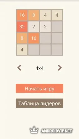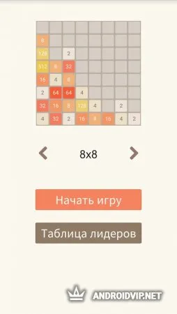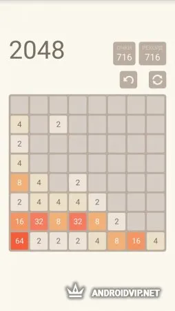Игровой процесс подразумевает сбор максимального числа, которое можно получить. Это можно сделать, перемещая квадраты из одной позиции в другую. Однако, перемещаются квадраты довольно интересным способом: свайп сдвинет числа в одну из сторон. Одинаковые числа будут умножаться друг на друга и именно таким способом необходимо набрать максимум. Успехов!