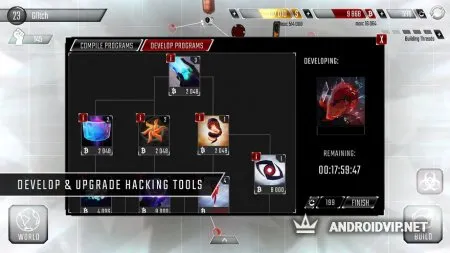 С этим высокотехнологичным интерфейсом, созданным специально для сетевых войн, вы можете писать свои программы, планировать стратегии и постепенно строить свою репутацию хакера. Представьте свою страну в Первой Мировой Кибервойне!
