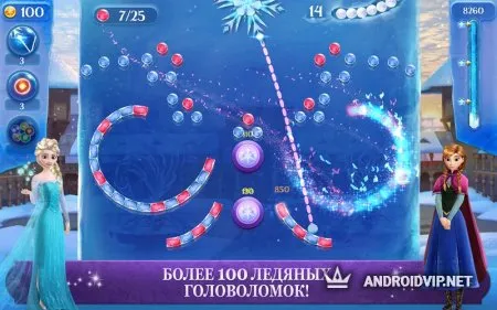 Холодное Сердце. Сияние - присоединяйтесь в чарующий мир зимы вместе с героями Эльзой, Анной и забавным снеговичком Олафом! Попробуйте решить эти сказочные головоломки! Волшебство не обойдёт вас стороной и поможет вам запускать снежные шарики при выполнении заданий, а также даст вам возможность получать специальные ускорители во время ходов.