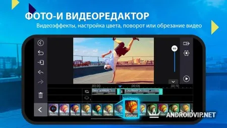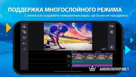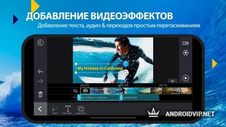 PowerDirector - лучший видеоредактор для ваших Android устройств. Эта мощная программа способна работать с полноценным 4K видео, редактировать материал в многодорожечном формате и многое другое. Имеет предельно понятный интерфейс, где даже новичок сможет разобраться. Приложением пользуются уже около 80 миллионов человек.