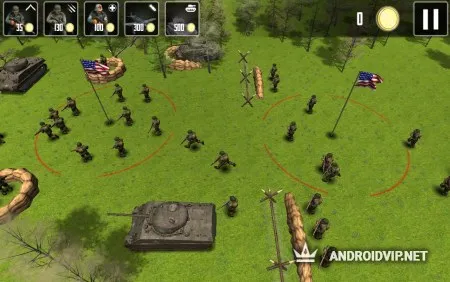 В пределах одного задания выдаётся определенное количество валюты, за которую можно приобретать технику. Получить дополнительные суммы можно за эффективное уничтожение противника на поле боя и за захват определенных точек, которые находятся под серьезной защитой. Используйте все способности: вызывайте санитаров для лечения раненных бойцов, заказывайте бомбардировку с воздуха и не стесняйтесь применять мощнейшие танки для достижения своих целей.