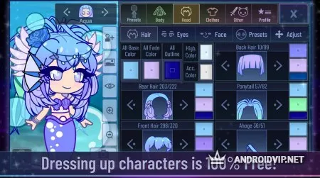Gacha Club - да начнётся вечеринка! Получи ни с чем не сравнимое удовольствие, создав своего уникального аниме персонажа! Наряди его в самую модную одежду и набор аксессуаров. Тысячи наименований одежды ждут твоего выбора! Сделай крутую причёску и даже снаряди своего героя оружием! Добавляй различных питомцев, чтобы закончить образ, придумай фон и остальные детали. Кастомизация на 100% бесплатна, никаких встроенных покупок и прочего.