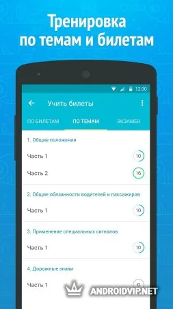 Вообще, само приложение максимально приближено к реальному экзамену и методом ответов на вопросы, и ограничением по времени. Есть особенный режим под названием «Марафон», в котором необходимо выполнять предложенные задания до первой допущенной ошибки.