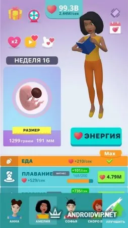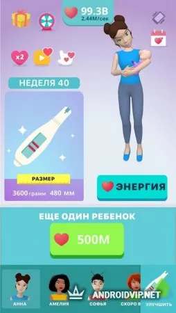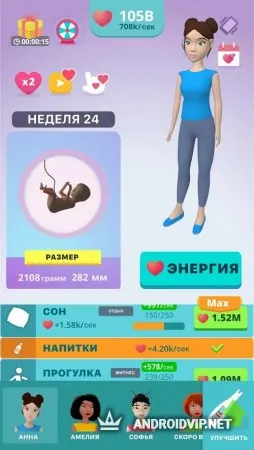 Вы пройдете весь путь с беременной девушкой от начала и до рождения первенца. Следите за состоянием её здоровья, и в случае чего принимайте необходимые меры. Подготовьте комнату для будущего малыша, купите мебель и все необходимые элементы. Уже терпится стать мамой? Тогда устанавливайте эту игру прямо сейчас!