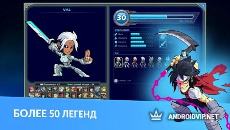Brawlhalla - захватывающая игра с боями против других игроков со всего мира. В сетевом режиме могут играть вместе до 8 игроков. Благодаря кроссплатформенной системе игроков ещё больше. В игре 50 разных персонажей и регулярно происходят обновления.