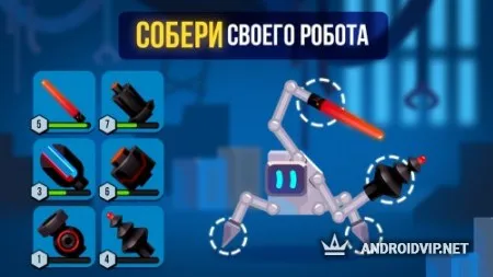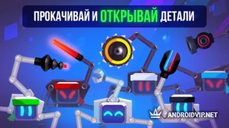 Robotics! - прикольный экшен от известной компании ZeptoLab, где вам предстоит собрать настоящего боевого робота из множества деталей и запчастей. Затем, обучив его поведению на поле сражения отправить его на битву с другими игроками. Благодаря реалистичной физике, бои проходят действительно зрелищно. За победы на аренах получайте новые детали, и открывайте новые карты.