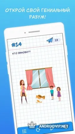 Подход к логическим играм у данного проекта совершенно другой. Вам предстоит трясти ваш телефон, переворачивать, или сделать то, что совсем казалось глупостью до этого момента. Не очевидный подход к решению задачи заставляет экспериментировать каждый раз по новому. Игра не имеет ограничений в возрасте. Играйте с друзьями, с детьми, с семьёй!