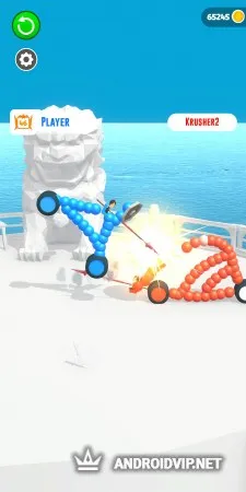 Нарисуйте схему вашего будущего транспорта простыми движениями пальца, затем наблюдайте как ваш рисунок превращается в реальный карт. Как только вы соберётесь и будете готовы, выходите на поле битвы с соперниками. За каждый выигранный бой вам дадут ценные бонусы, которые можно потратить на улучшение вашего оружия, или на покупку совершенно нового, будь то топор, молот, булава и другие разновидности. Доступны несколько красиво прорисованных арен.