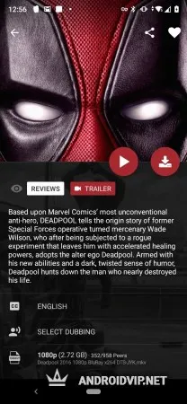 - Приятный тёмный интерфейс и удобный видеоплеер;