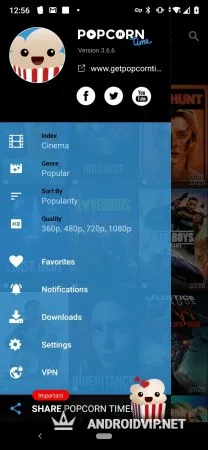 Просмотр медиафайлов в потоковом режиме в данный момент очень актуально. Попкорн Тайм ничем не уступает другим приложениям, а даже где-то опережает. Здесь есть собственный поисковик, можно воспользоваться фильтрами по рейтингу фильмов или же по жанрам. Есть возможность скачать фильмы и сериалы, чтобы пользоваться приложением без подключения к интернету. К тому же можно просматривать все видео в HD качестве и даже в оригинальной озвучке с разными субтитрами. Весь контент обновляется регулярно и всегда доступны последние выпуски множества фильмов и сериалов.