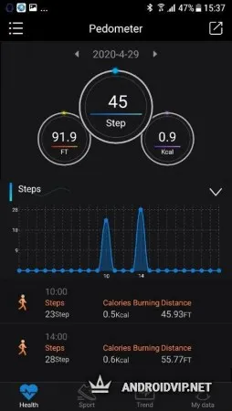 - Синхронизация приложения с вашим браслетом или смарт часами;