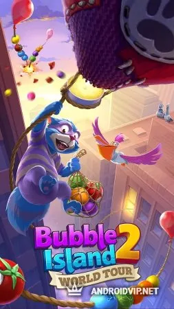 Bubble Island 2: World Tour - очень веселая аркада, которая поможет скоротать свободное время даже без подключения к интернету. Цель игры очень простая: игрокам необходимо сбить все фрукты из предоставленной пушки. Формируйте группы из одинаковых видов фруктов, тем самым уничтожая их и расчищая площадку. Чем больше предметов окажется в одной группе, тем выше шанс заработать максимальное количество очков и получить их удвоенное количество, в качестве бонуса. И в этом интересном, но порой, очень тяжелом деле, на протяжении всей игры вам будет помогать очаровательный енот. Вместе с ним вы будете путешествовать по различным странам, выполняя задания.