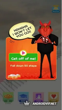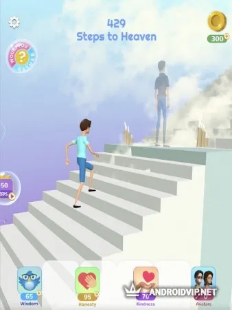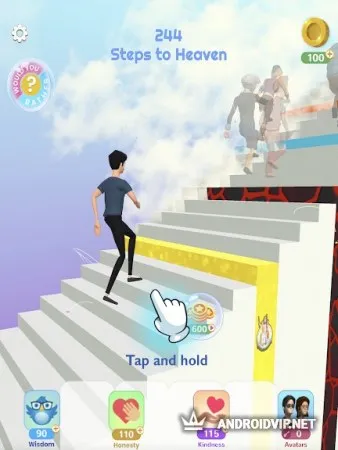 Каждое ваше решение влечёт за собой последствия. Правильные решения помогут и подтолкнут вам ближе к небесам. А вот недоброжелательные и неправильные решения могут отнюдь, столкнуть вас вниз, и даже есть риск провалиться в ад! Вы можете пройти этот путь за нескольких персонажей, и всегда будут присутствовать абсолютно разные и курьёзные вопросы, прям как в жизни.
