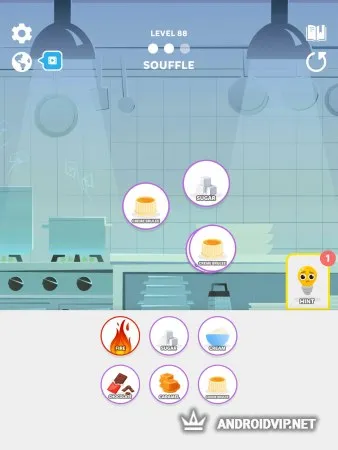 Каждый уровень вам будет открываться новая логическая задача и набор из нескольких элементов. Тщательно продумайте к какому результату приведет сочетание тех или иных элементов и выберите наилучший вариант. Если вы окажитесь в затруднительном положении – у вас всегда будет возможность воспользоваться подсказкой. Для этого нажмите на жёлтую лампочку в правом нижнем углу экрана. Использовав неверную комбинацию, вас будет ждать неожиданное, а порой и забавное развитие событий, но уровень придется проходить до тех пор, вы не разгадайте головоломку и не выполните поставленную задачу.