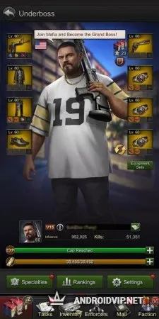 У каждого игрока есть возможность развивать криминальную империю по-своему. Расставляйте свои приоритеты в развитии банды, управляйте местным бизнесом и правильно подбирайте персонажей в зависимости от грядущей битвы. Вы сможете играть с плейерами со всего мира, объединяться с ними во фракции или сражаться в ожесточенных битвах, а детализированная 3D графика и удобный интерфейс сделают игровой процесс незабываемым.