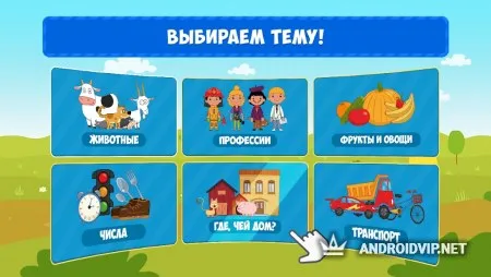 Доступны 6 разных тем для обучения, более 50 предметов, которые ваш малыш сможет изучить и запомнить всё больше слов. А ещё проект призван развить у ребёнка мелкую моторику и, конечно же, логику.