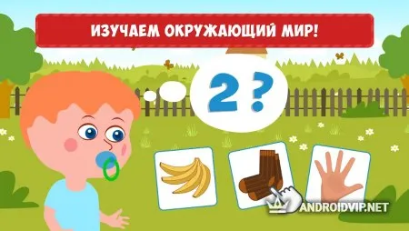 В игре малыш познакомится с весёлыми персонажами, которые помогут ему выучить цифры, узнать подробнее о разных профессиях, выучить названия животных и в то же время поиграть в интересные мини-игры. Можно собирать разные картинки из уже выученных ранее в игре предметов, решать разные логические задачки и разгадывать загадки. Например, сколько пальцев у людей на руке, кто пьёт молоко и так далее.