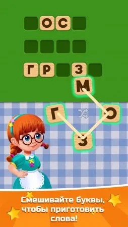 Разгадывайте слова, составляя их из перемешанных букв, открывайте дополнительные слова за бонусные монеты, пользуйтесь подсказками или попросите о помощи друзей. Разгадывая головоломки, вы помогаете вашей героине ремонтировать семейный ресторан и открывать новые локации. Свайпайте по экрану, переносите буквы и составляйте из них слова. Участвуйте в турнирах и соревнуйтесь с игроками по всему миру – открывайте буквы, обгоняйте других и получайте призы.