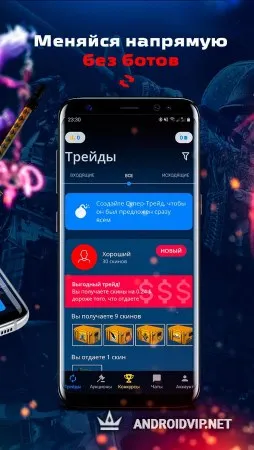 Вы сможете даже немного подзаработать в данном приложении, для этого предстоит следить за обменами скинов и выигрывать на разнице стоимости. Получайте разные бонусы, за то, что пригласите своего друга. Интерфейс в приложении достаточно удобный, а правила обмена простые. Здесь вы всегда сможете найти и получит то, что искали.