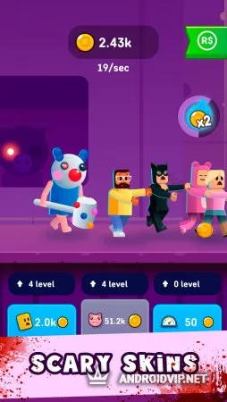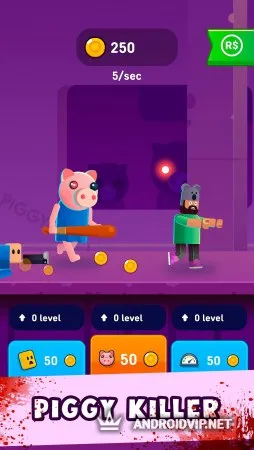 Piggy Game for Robux - это хоррор, где вам предстоит играть в роли свиньи-копилки. Вооружитесь дубинками, гонитесь за жертвами, догоните как можно больше людей и зарабатывайте очки-робуксы.