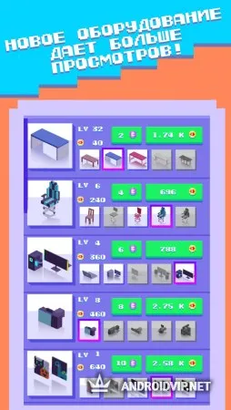 Чем интереснее ваш контент, тем больше внимания он привлечёт. Следите за своей статистикой и старайтесь заполучить новых подписчиков. Чаще меняйте образы и обустраивайте пространство своей комнаты так, чтобы можно было использовать его для съёмок. Со временем у вас появится возможность приобретать новое оборудование, которое поможет вам собрать больше просмотров. Привлекайте к своему каналу внимание и получайте ценные награды за достижения. Завоюйте любовь зрителей и станьте самым популярным блогером в интернете!