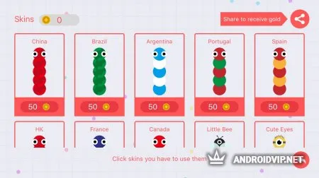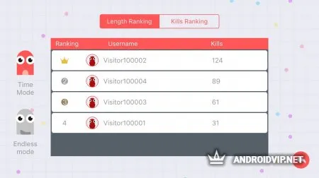 Змейка начинает свое движение по клеточному полю, на котором расположены разноцветные точки. Эта своеобразная карта и есть локация, которую необходимо пройти с определенными условиями. К примеру, нельзя допускать, чтобы голова вашей змеи коснулась другой змеи, иначе игра закончится. Но зато, если врезались в вас, то вам ничего не будет, а погибшая змейка оставит после себя много различных точек. Чтобы первым отвоевать себе территорию для развития, можно ускоряться, тем самым обгоняя всех противников. Прохождение каждой локации занимает не больше пяти минут, при условии, что змея не наткнулась на кого-либо и не врезалась в саму себя. Два режима прохождения на выбор: бесконечное время и пятиминутный режим.