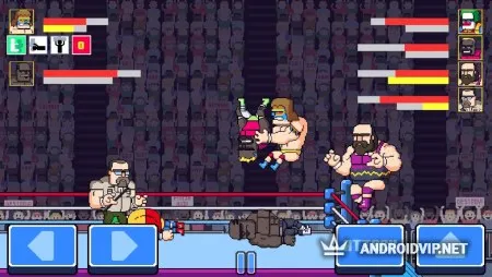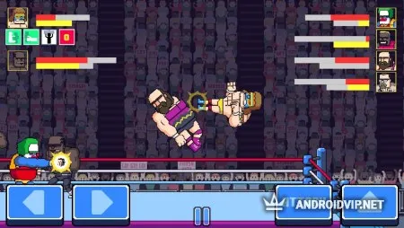 Также, есть возможность открыть новых персонажей, или же разблокировать бесконечный режим, который открывает доступ к режиму королевской битвы. Управление в игре достаточно простое, где присутствуют всего четыре кнопки управления. Но этого хватает для того, чтобы совершать невообразимые трюки, можно швырнуть противника, перебросить через себя, сделать захват и много другое. Станьте настоящим профессионалом и самым знаменитым рестлером!