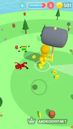 Получите заряд позитива, размахивая огромным оружием на небольшом участке карты, где десяток таких, как вы норовят друг друга прибить. Открывайте прикольные скины персонажей с разнообразной внешностью и оружием.