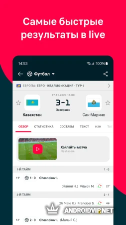 Благодаря этому приложению, вы всегда будете в курсе всех событий, кому выдали красную карточку, забили гол или завершился тайм, уведомления сразу же вам подскажут об этом. Следите за развитием вашей любой команды или спортсменов, статистика ведётся в мельчайших подробностях. Изучайте аналитику, получайте прогнозы на будущее, всё вы получите в этом замечательном приложении для любителей настоящего спорта!