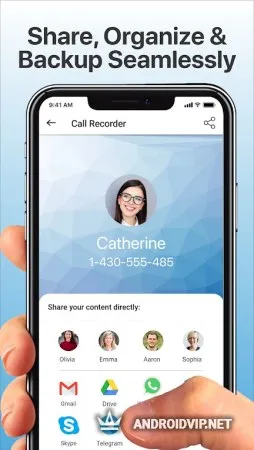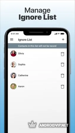 Выберите абонента, разговоры с которыми будут записываться автоматически, записи сохранятся в отдельную папку и будут отсортированы по дате и именам. Также, есть возможность установить на запись все входящие или исходящие звонки. Готовые записи вы сможете сразу же воспроизвести, переместить в другую папку или же обменяться в мессенджерах прямо из приложения. Помимо записи звонков, программа имеет функцию чёрного списка, куда можно добавить нежелательные абоненты и игнорировать их входящие звонки.