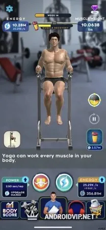 Idle Workout ! - это интересная айдл-игра на тему спорта и фитнеса в частности. Вы готовы перестать быть толстым увальнем и стать настоящим Аполлоном наших дней в плане фигуры? Тогда собирайте сумку со сменной спортивной одеждой, изотоником и вперёд в спортзал, работать над собой!