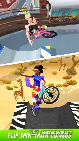В самом начале, вам понадобится выбрать себе велосипед из более десятка доступных вариантов, и подобрать себе одного из пяти персонажей. Затем, сразу же отправляетесь на площадку, где на каждом уровне вам будут предложены несколько видов трюков. Постарайтесь выполнить их все как можно большее количество раз и избегайте падений, за это вы будете получать монеты и другие награды. Игровую валюту сможете потратить на прокачку вашего велосипеда или на покупку нового. Открывайте новые локации и посетите самые крутые площадки по всему миру!