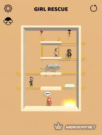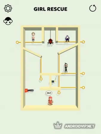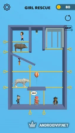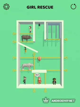 pin rescue - казуальная игра-головоломка, которая поможет вам прокачать своё логическое мышление и заставит изрядно попотеть над решением увлекательных задач. Помогайте своему герою выбираться из хитроумных ловушек, спасайте заточенных в извилистых лабиринтах девушек и проходите множество захватывающих уровней!
