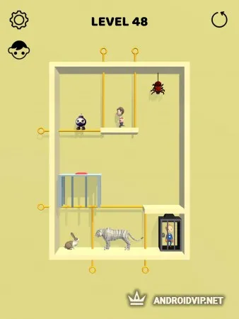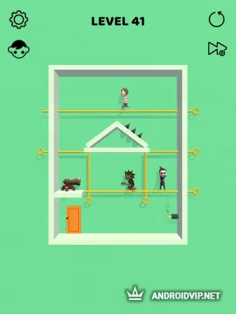 С каждым новым уровнем сложность головоломок увеличивается и вас будет поджидать ещё больше ловушек. Вытаскивайте булавки в нужном порядке, и сокращайте количество опасностей. Например, чтобы избавиться от огромного тигра, вы можете потянуть за булавку и спустить его прямо на острые шипы, чтобы быстро уничтожить и расчистить себе дорогу. Успешно завершая уровни, вы будете получать монеты, за которые можно приобретать улучшения и новые скины. Игра может похвастаться красочным дизайном в минималистичном стиле, простым управлением и увлекательным геймплеем. Откройте всех персонажей и помогите им найти дорогу домой.