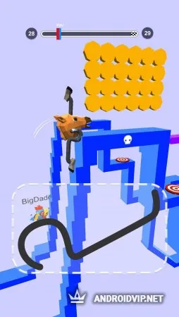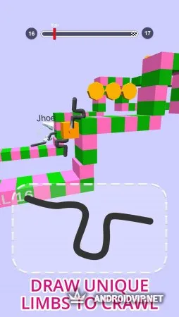 В самом начале, вам понадобиться выбрать цвет вашего куба, или же подобрать внешность, которые будут открываться по мере прохождения. Затем, сразу же отправляйтесь на соревнования 1 на 1. Перед стартом, каждому игроку необходимо буквальным образом нарисовать форму ног своему персонажу. Формы могут быть абсолютно разные, от обычных продолговатых и круглых, до самых невообразимых и многогранных геометрических фигур. Главное, вовремя среагировать и поменять прямо во время гонки форму, чтобы суметь подняться на высокую гору, перепрыгнуть обрыв, или же набрать быстрее скорость.