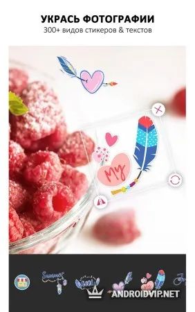 В приложении собраны все необходимые инструменты для того, чтобы сделать ваши фотографии яркими и запоминающимися. Вас ждёт более 200 фотоэффектов, 300 видов стикеров и текстов и возможность редактировать в режиме реального времени. Воспользуйтесь селфи-камерой применяя различные эффекты прямо во время съёмки. Меняйте овал лица, делайте тон кожи ровным и убирайте все, что кажется вас недостатком. Отбеливайте зубы, увеличивайте или уменьшайте черты лица и устраняйте на фото эффект красных глаз. Создавайте разнообразные коллажи, применяя красочные рамки.