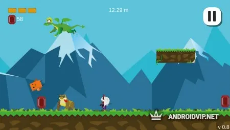 Управление в игре достаточно простое, присутствуют три кнопки управления, справа находится кнопка для совершения прыжка, а слева находятся стрелочки для бега. В игре вас ожидает достаточно простая и красочная графика, приятное музыкальное сопровождение и множество необычных персонажей. Ставьте всё новые рекорды, улучшайте вашего героя и дойдите наконец до вашего замка!