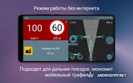 Радар-детектор использует технологию GPS, благодаря чему указывает точные координаты мобильных постов ДПС и расположение треног. В список отслеживаемых камер входят следующие модели: Кречет, Арена, Автодория, Поток, АвтоУраган, Кордон, Одиссей, Крис и другие, менее используемые модели камер. Приложение может работать без постоянного подключения к интернету, для этого перед поездкой необходимо обновить карты в нужном вам регионе или области. Присутствует функция умного спидометра, которая предупредит о необходимости сбросить скорость, и ведёт статистику о дальности, скорости и времени вашей поездки.