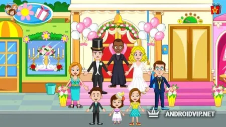 My Town : Wedding - это развивающий симулятор для детей, где предстоит организовать идеальную свадьбу мечты. В вашем распоряжении будет целый магазин нарядов, цветов, подарков, кондитерская для приготовления торта, несколько помещений для празднования и множество других интересных деталей. Эта игра обладает доброй и тёплой атмосферой праздника, замечательным образом поможет ребёнку развивать фантазию и творческие способности!