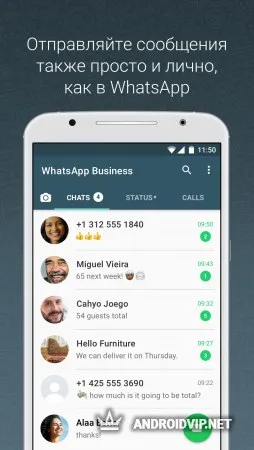 Главным преимуществом приложения является возможность совмещать использование стандартного WhatsApp Messenger вместе с бизнес версией. Вы можете одновременно закачать оба приложения привязав к обычному мессенджеру свой личный номер, а к бизнес версии - рабочий телефон вашей компании. При этом, все ваши клиенты смогут связываться с вами при помощи стандартного мессенджера. Скачивайте приложение совершенно бесплатно и сделайте свой бизнес ещё успешнее!