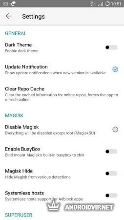 Magisk Manager - это удобный менеджер модов, что позволит управлять системными изменениями и устанавливать все модификации с одно удобного интерфейса. Дополнительной функцией является возможность скрытия наличия root прав на телефоне от некоторых приложений, которые блокируют его сразу же, после обнаружения.