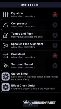 Плеер поддерживает практически все существующие аудио форматы от MP3 до WAV, а воспроизведение звука происходит напрямую в ЦАП без конвертации. Обработка звука высокого разрешения даст вам возможность получить качественный Hi-Fi звук на любой из используемых платформ. Помимо этого, приложение способно отправлять звук на сетевые рендеры оставляя все примененные эффекты. Воспользуйтесь всеми возможностями и элементами управления и сделайте прослушивание музыки удобным именно для вас.